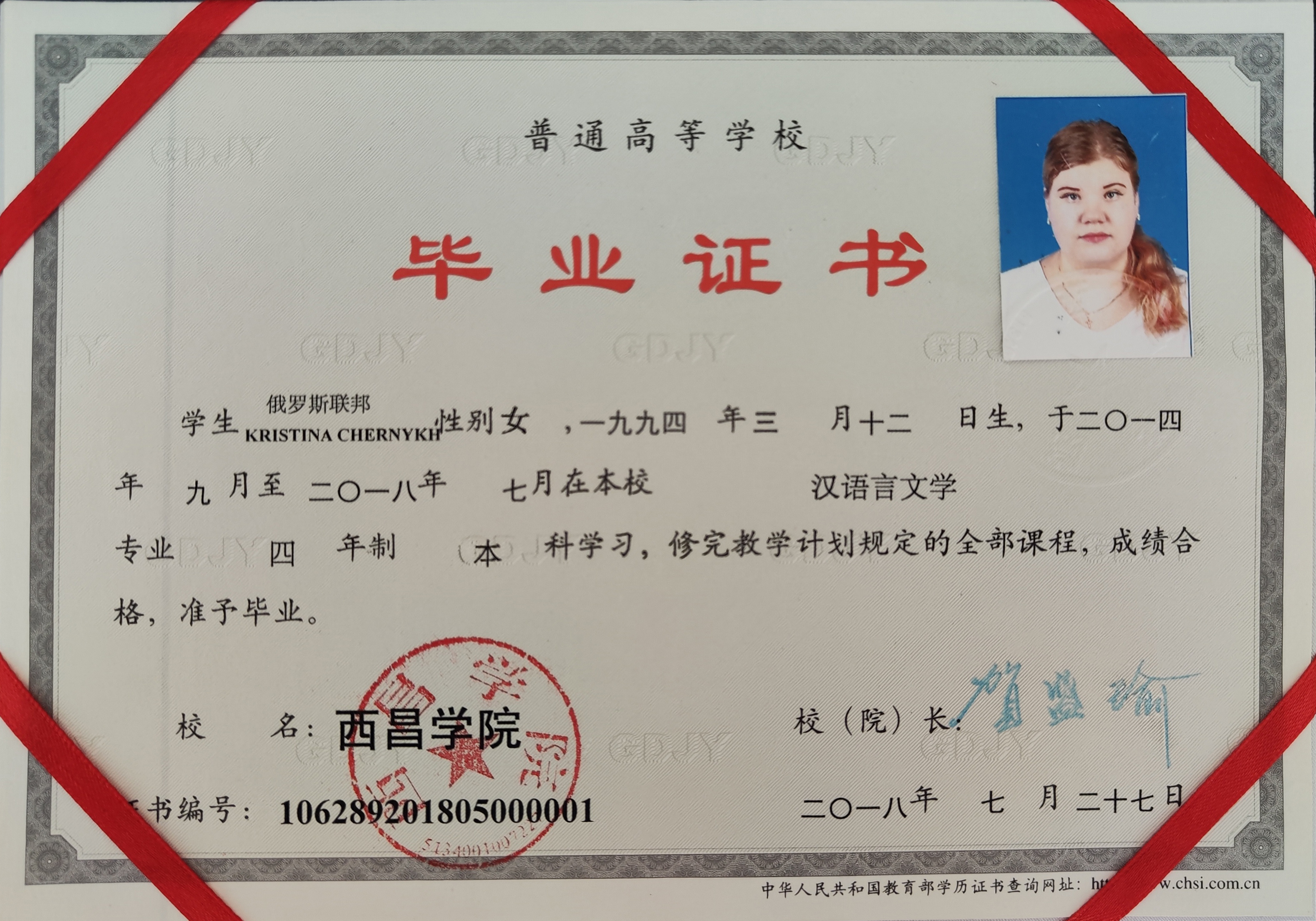 Сертификат о прохождении курсов Китайского языка